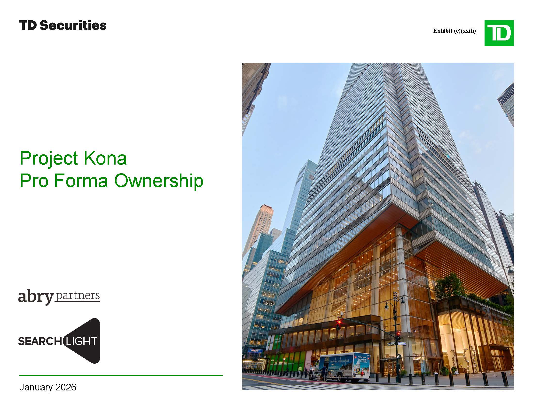 other conditions that TD Securities may deem appropriate. “TD Securities” is a trademark of The Toronto-Dominion Bank (“TD”) and represents certain investment banking, capital markets and wholesale banking activities conducted through certain