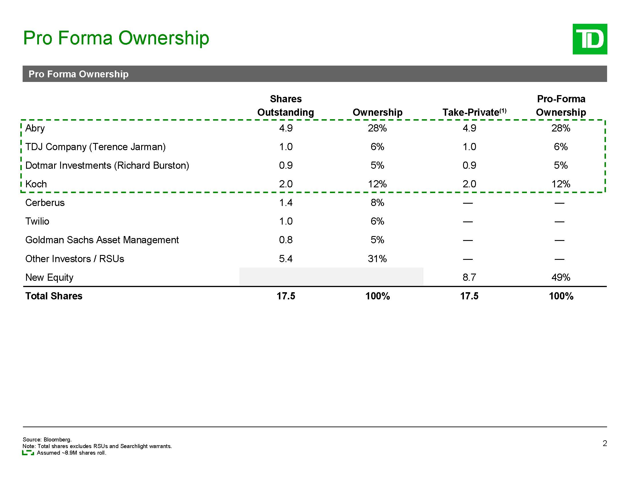 illustrative purposes only. In preparing the materials, TD Securities has relied upon documents and information prepared for or supplied to TD Securities by the Company and other sources, without independent verification by TD Securities. Any