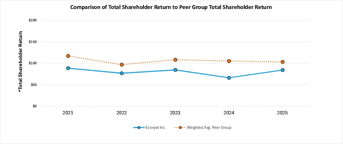 | The peer group for 2025 used in this calculation is defined as the “2025 Compensation Peer Group” on page 36. The adjustments to the peer group for 2025 approved in October 2024 were the removal of Chase Corporation, GCP Applied Technologies and Livent following their acquisition, the removal of NN, Inc. and CSW Industrials, Inc. given limited industry relevance, and the addition of AirBoss of America Corp. The returns of each issuer of the group were weighted according to the respective issuers’ stock market capitalization at the beginning of the period for which a return is indicated. |