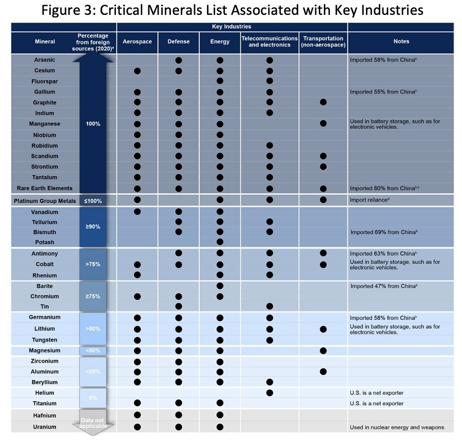 Critical Minerals Underpin U.S. Economic Security and National Defense