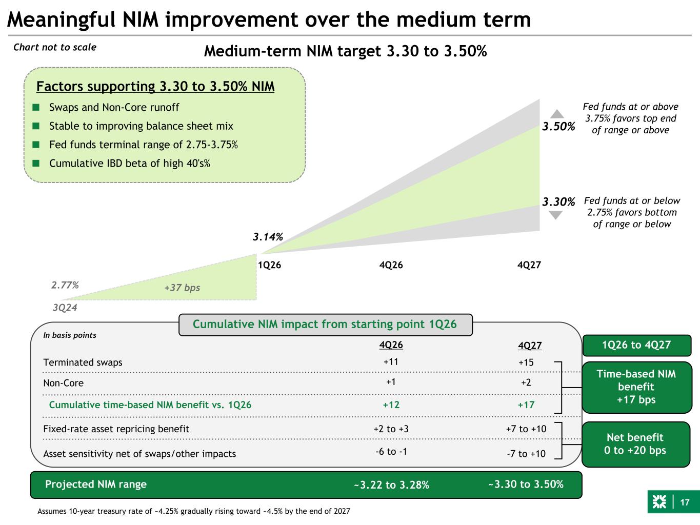 17 Meaningful NIM improvement over the medium term Medium-term NIM target 3.30 to 3.50% Terminated swaps Non-Core Asset sensitivity net of swaps/other impacts Projected NIM range Fixed-rate asset repricing benefit Cumulative time-based NIM benefit vs. 1Q26 4Q26 4Q27 In basis points +11 +1 +12 +15 +2 +17 +7 to +10 -7 to +10 ~3.30 to 3.50% Chart not to scale Net benefit 0 to +20 bps 3.30% 3.50% Fed funds at or above 3.75% favors top end of range or above Fed funds at or below 2.75% favors bottom of range or below Factors supporting 3.30 to 3.50% NIM ■ Swaps and Non-Core runoff ■ Stable to improving balance sheet mix ■ Fed funds terminal range of 2.75-3.75% ■ Cumulative IBD beta of high 40's% Time-based NIM benefit +17 bps Assumes 10-year treasury rate of ~4.25% gradually rising toward ~4.5% by the end of 2027 +2 to +3 Cumulative NIM impact from starting point 1Q26 3Q24 2.77% 1Q26 3.14% 4Q26 4Q27 +37 bps -6 to -1 ~3.22 to 3.28% 1Q26 to 4Q27