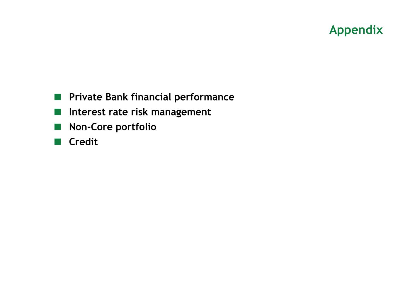 Appendix ■ Private Bank financial performance ■ Interest rate risk management ■ Non-Core portfolio ■ Credit