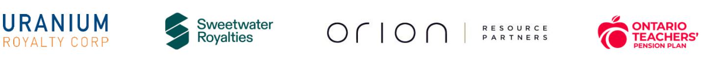 Scott Melbye, Chief Executive Officer, President and Director of URC stated: “We welcome this transformational combination that will accelerate near term cash flows from competitive and reliable, long-life assets located in a top-tier jurisdiction, Wyoming, in which we have a great deal of affinity and familiarity. More importantly, it provides a strong financial base to allow us to fully realize and expand our uranium focus at a time of historic growth in nuclear energy. The global uranium market is experiencing a meaningful primary supply deficit, expected to drive significant capital investment in the years ahead. This enhanced, newly formed royalty leader will be uniquely positioned to capitalize on favorable market dynamics.”