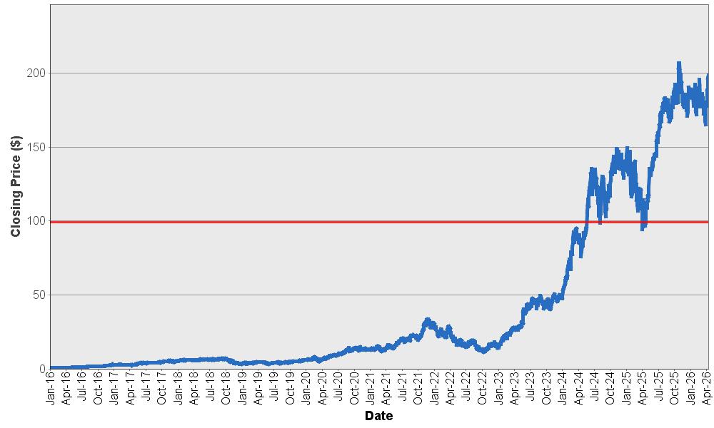 | Common Stock of NVIDIA Corporation – Historical Closing Prices* January 4, 2016 to April 15, 2026 |