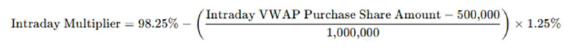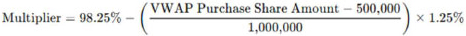 For example, if the VWAP Purchase Share Amount specified in the applicable VWAP Purchase Notice equals one million (1,000,000) shares, the resulting Multiplier would be 97.625% (i.e., a 2.375% discount to VWAP).