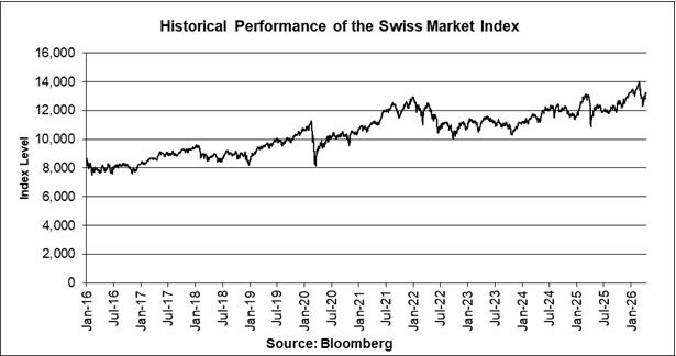 The graph below illustrates the daily performance of the Swiss Market Index from January 4, 2016 through April 14, 2026, based on information from Bloomberg, without independent verification. The closing level of the Swiss Market Index on April 14, 2026 was 13,269.77. We obtained the closing levels of the Swiss Market Index above and below from Bloomberg, without independent verification.
