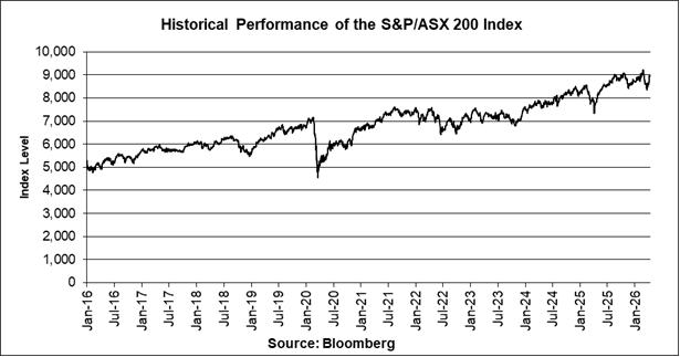 The graph below illustrates the daily performance of the S&P/ASX 200 Index from January 4, 2016 through April 14, 2026, based on information from Bloomberg, without independent verification. The closing level of the S&P/ASX 200 Index on April 14, 2026 was 8,970.818. We obtained the closing levels of the S&P/ASX 200 Index above and below from Bloomberg, without independent verification.