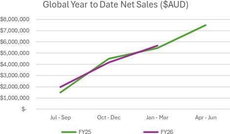 | ● | YTD Mar 2026 sales AUD$5.7 million up 7% on prior comparative period (pcp) |