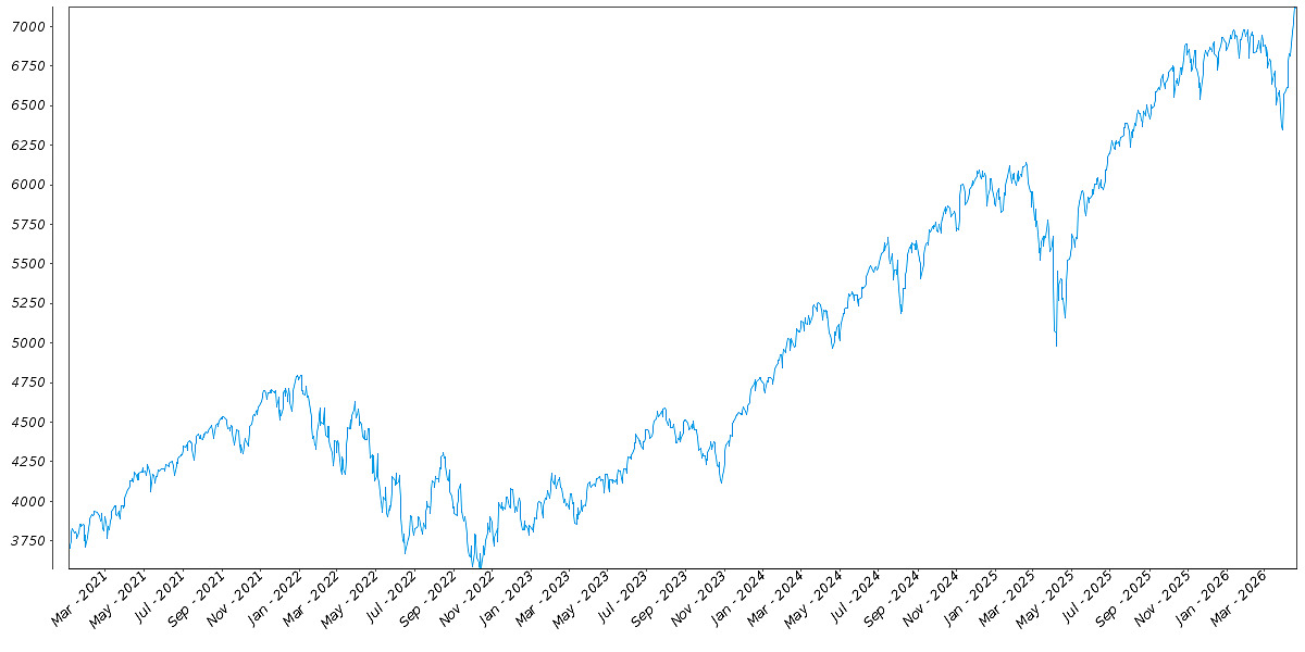 The following graph sets forth the daily historical performance of the SPX in the period from January 2, 2021 through the pricing date. We obtained this historical data from Bloomberg L.P. We have not independently verified the accuracy or completeness of the information obtained from Bloomberg L.P. On the pricing date, the closing level of the SPX was 7,109.14.