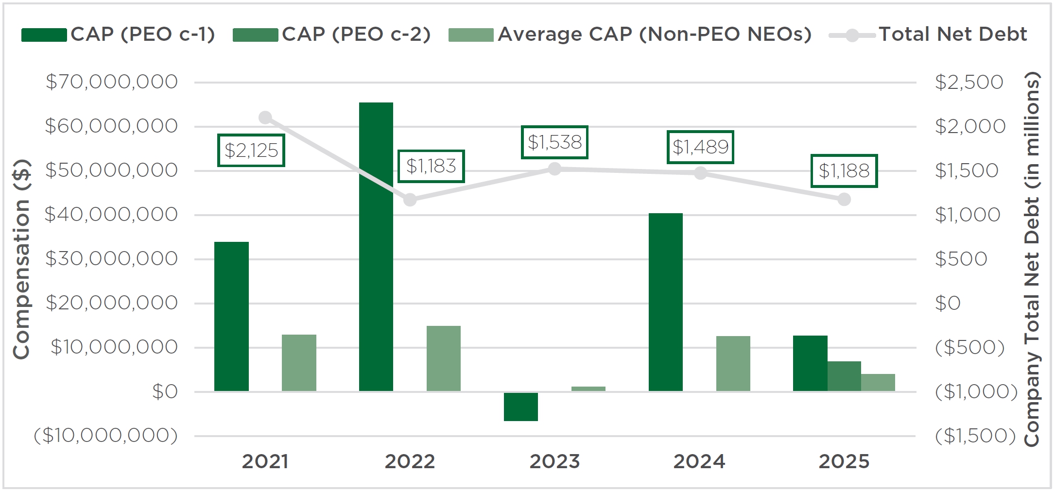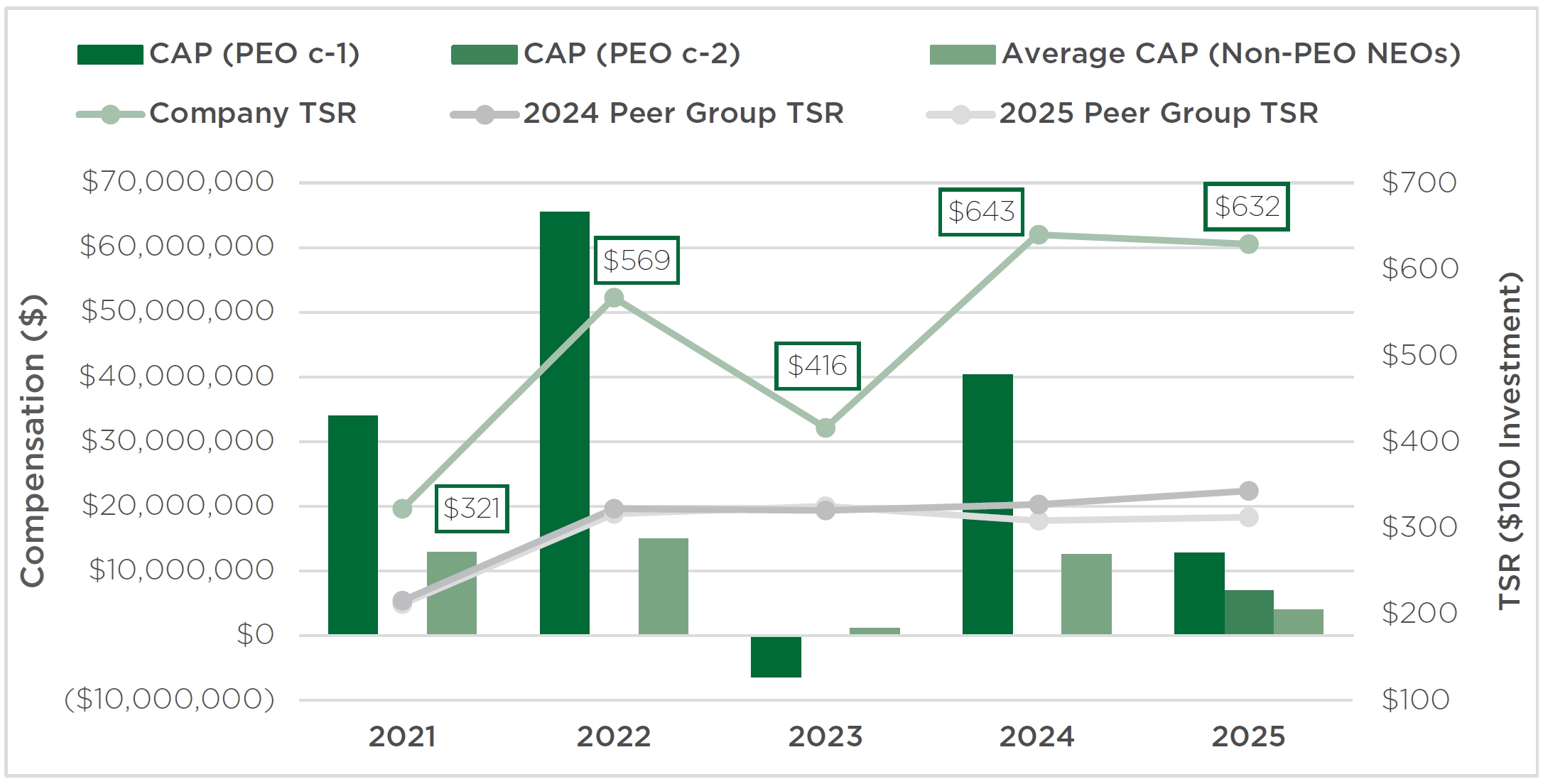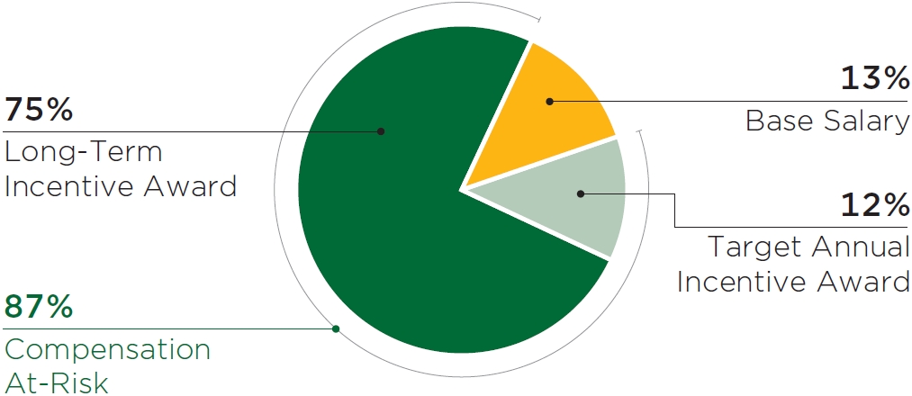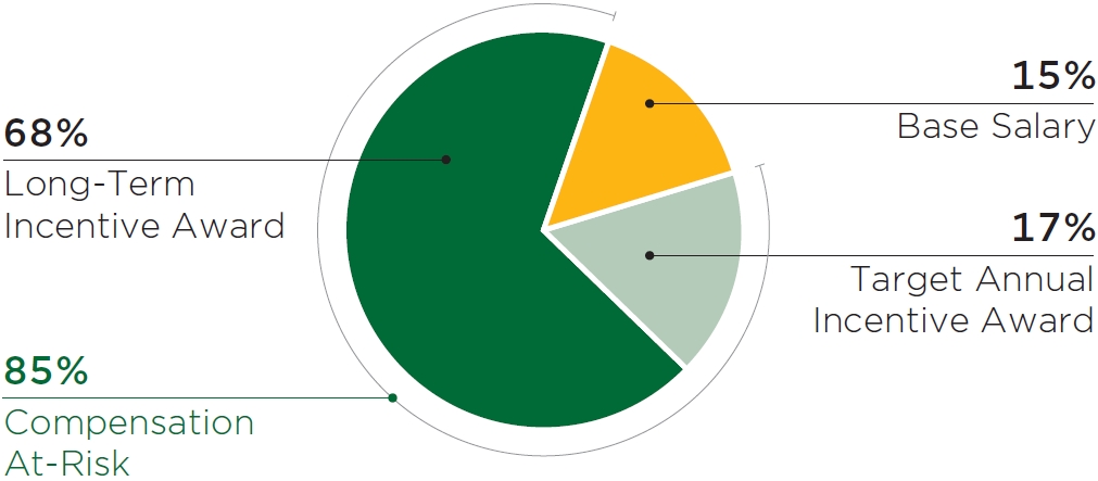 | • | Long-term incentive compensation awards were 50% performance-based equity awards for our Named Executive Officers based on absolute TSR performance hurdles and leverage metrics and 50% time-based equity awards. All long-term incentive awards vest over several years to reward sustained Company performance over time. |