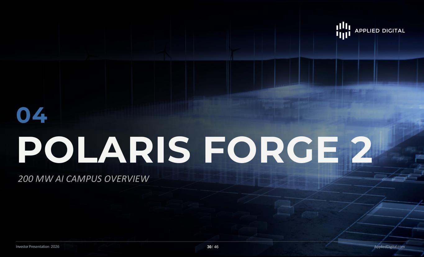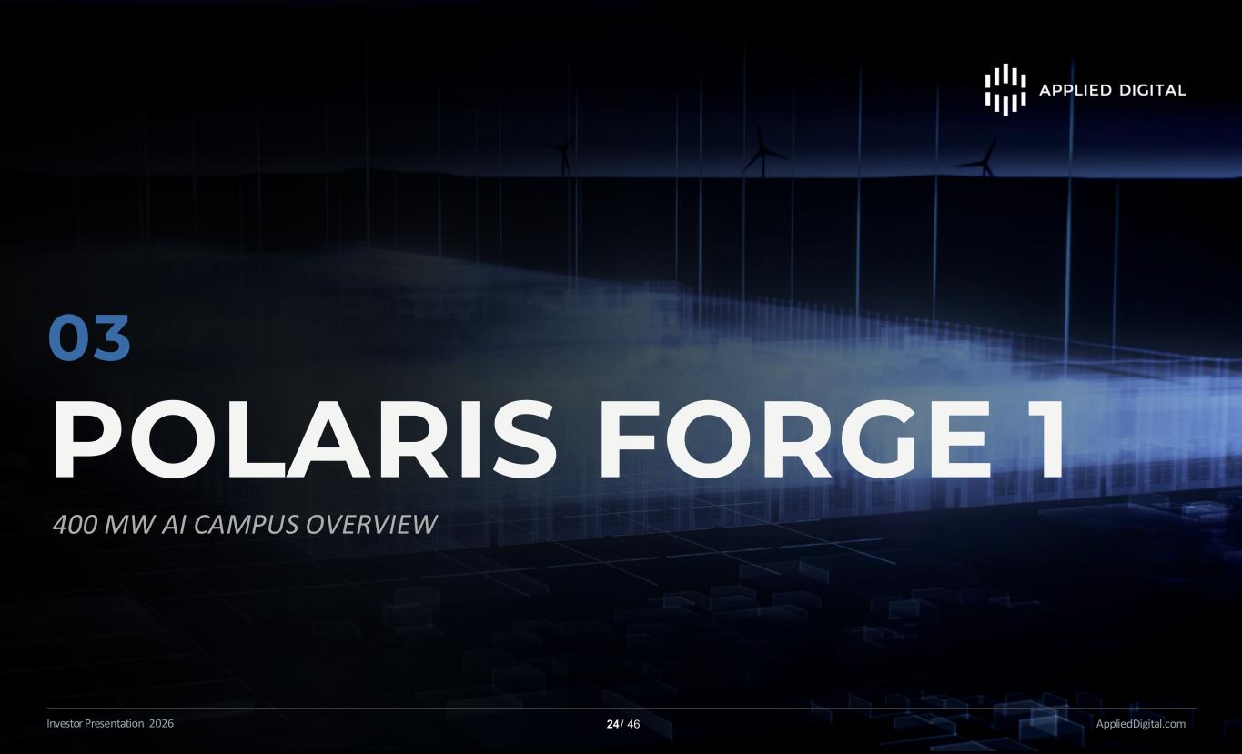 TABLE OF CONTENTS AppliedDigital.comInvestor Presentation 2026 01 — Company Overview 02 — Artificial intelligence Data Centers 03 — Polaris Forge 1 04 — Polaris Forge 2 05 — Delta Forge 1 06 — Blockchain Data Centers 07 — Macquarie Transaction +Convertible Bond 08 —Appendix 3 / 46