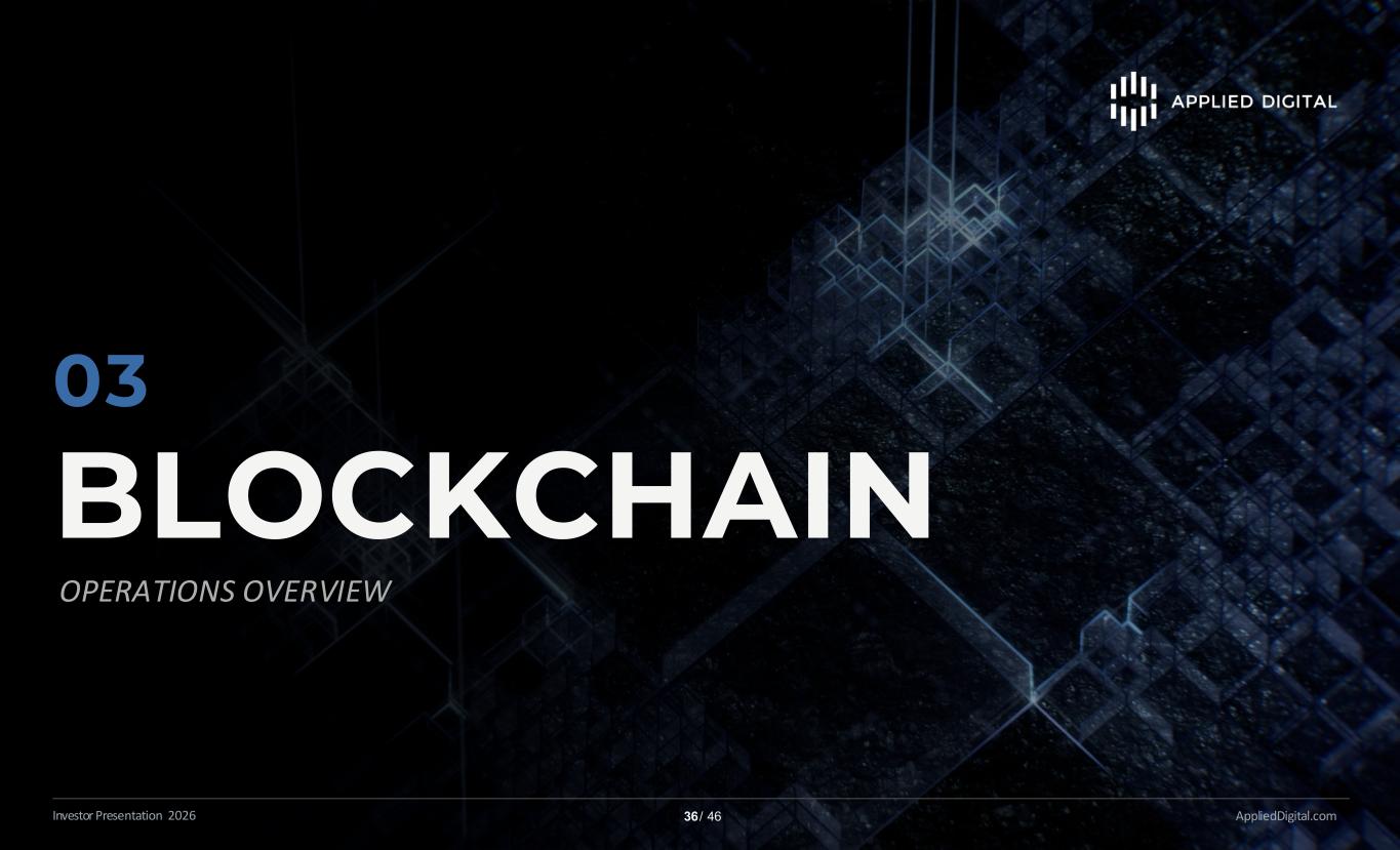 BLOCKCHAIN BLOCKCHAIN AppliedDigital.comInvestor Presentation 2026 36 / 46 03 OPERATIONS OVERVIEW