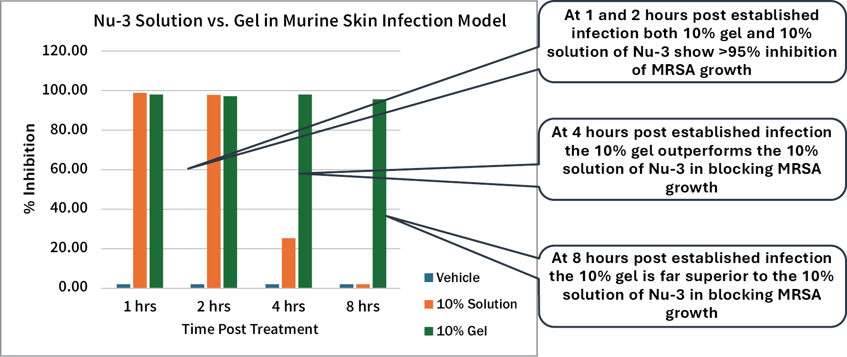 For our lead candidate, Nu-3 gel, we believe that these three key competitive advantages, if confirmed clinically and once reviewed and approved by the FDA and other Health Authorities, will position it to potentially become a competitive and relevant component in the care of infected diabetic foot ulcers (iDFU). The rationale behind this is that, if confirmed clinically, Nu-3 gel would not only exhibit the broad-spectrum activity against all regular pathogens but also against resistant pathogens like MRSA, which are not susceptible to antibiotics that are routinely used today as the Standard of Care (SOC) in patients with mildly infected DFU. The problem