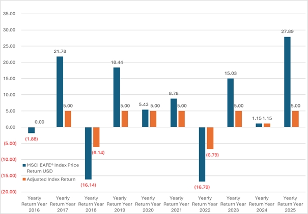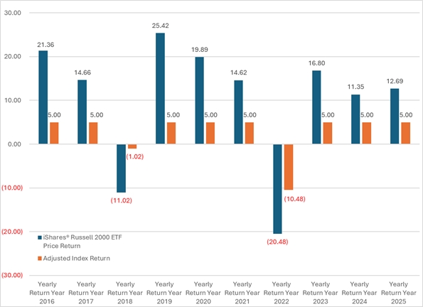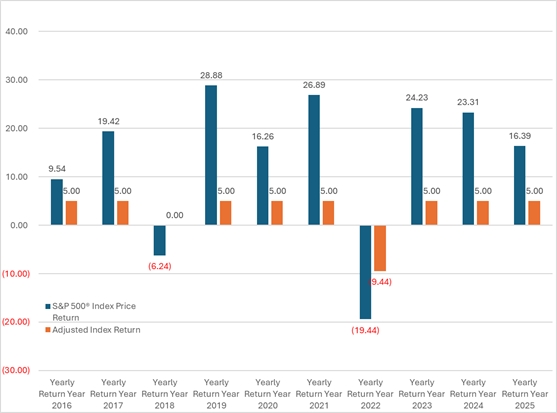 ● 5% annual appreciation ● No optional benefits ● No sales charges ● No additional purchase payments, transfers, or withdrawals |