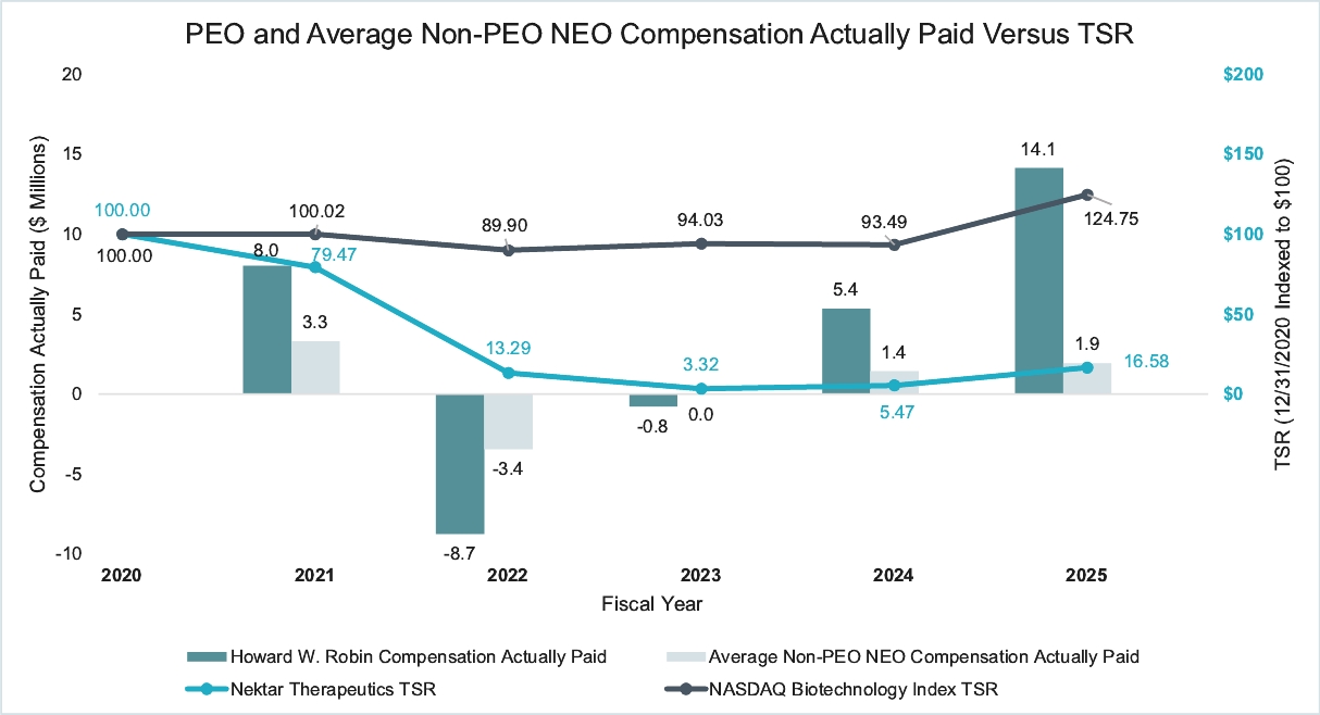 | The Peer Group TSR set forth in this table utilizes the NASDAQ Biotechnology Index, which we also utilize in the stock performance graph required by Item 201(e) of Regulation S-K included in our Form 10-K for the year ended December 31, 2025. The comparison assumes $100 was invested for the period starting December 31, 2020, through the end of the listed year in the Company and in the NASDAQ Biotechnology Index, respectively. Historical stock performance is not necessarily indicative of future stock performance. |