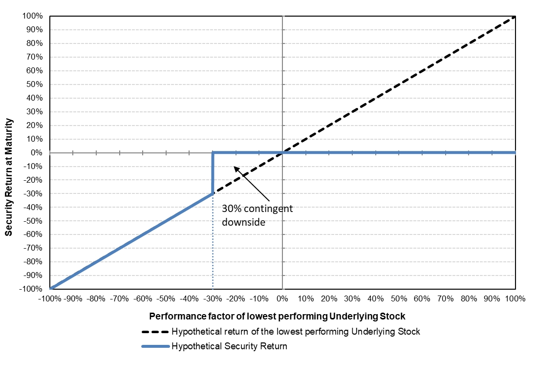 You May Be Fully Exposed To The Decline In The Lowest Performing Underlying Stock On The Final Calculation Day From Its Starting Price, But Will Not Participate In Any Positive Performance