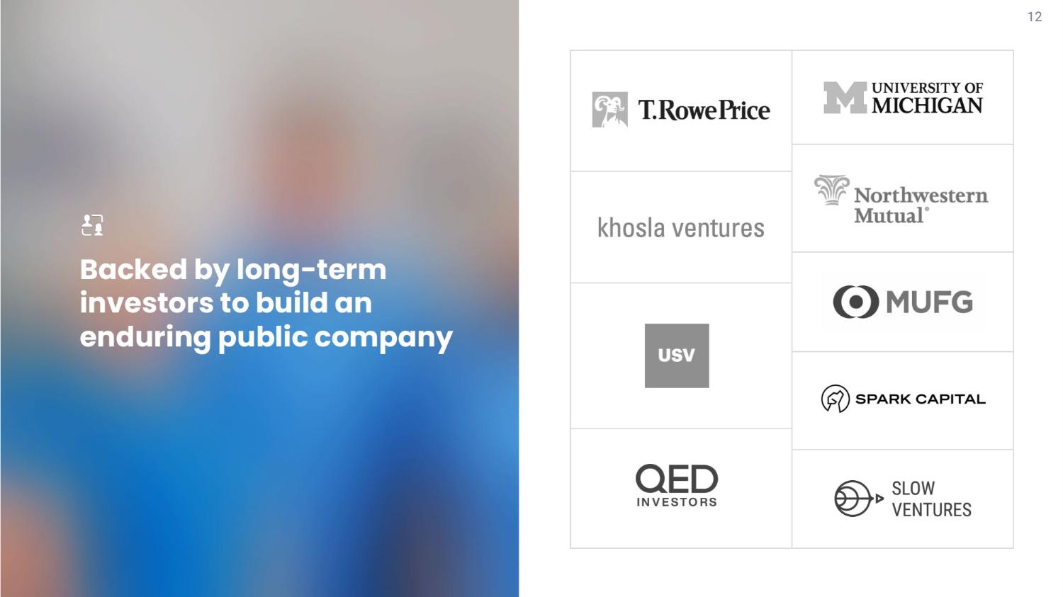 11 Shareholder - aligned exec team Invested $1M at Series E Investing $1M in PIPE + + + 4 year / $25 per share lock - up 1 Market salaries or below No cash bonuses + + + Incentive plan entirely stock - based 1) Lock - up ends on the earlier of (i) the four - year anniversary of the Closing, (ii) the date the VWAP equals or exceeds $25.00 per share for any 20 trading days within any 30 - trading - day period commencing at least 150 days after the Closing, or (iii) termination of employment without cause.