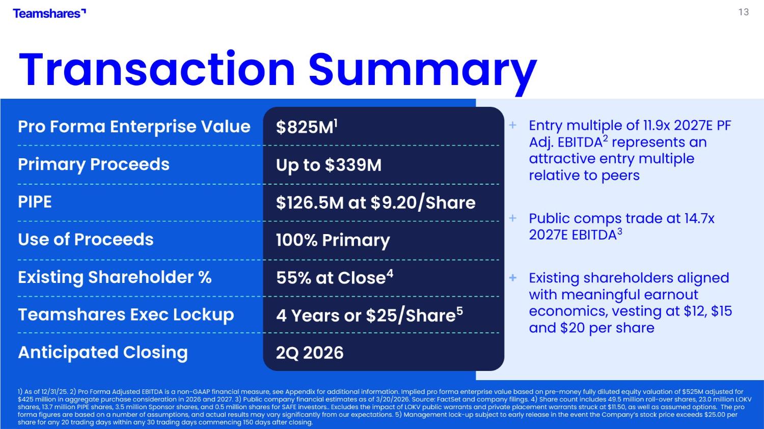 13 1) As of 12/31/25. 2) Pro Forma Adjusted EBITDA is a non - GAAP financial measure, see Appendix for additional information. Implied pro forma enterprise value based on pre - money fully diluted equity valuation of $525M adjusted for $425 million in aggregate purchase consideration in 2026 and 2027. 3) Public company financial estimates as of 3/20/2026. Source: FactSet and company filings. 4) Share count includes 49.5 million roll - over shares, 23.0 million LOKV shares, 13.7 million PIPE shares, 3.5 million Sponsor shares, and 0.5 million shares for SAFE investors.. Excludes the impact of LOKV public warrants and private placement warrants struck at $11.50, as well as assumed options. The pro forma figures are based on a number of assumptions, and actual results may vary significantly from our expectations. 5) Management lock - up subject to early release in the event the Company’s stock price exceeds $25.00 per share for any 20 trading days within any 30 trading days commencing 150 days after closing. + Entry multiple of 11.9x 2027E PF Adj. EBITDA 2 represents an attractive entry multiple relative to peers + Public comps trade at 14.7x 2027E EBITDA 3 + Existing shareholders aligned with meaningful earnout economics, vesting at $12, $15 and $20 per share Pro Forma Enterprise Value $825M 1 Primary Proceeds Up to $339M PIPE $126.5M at $9.20/Share Use of Proceeds 100% Primary Existing Shareholder % 55% at Close 4 Teamshares Exec Lockup 4 Years or $25/Share 5 Anticipated Closing 2Q 2026 Transaction Summary