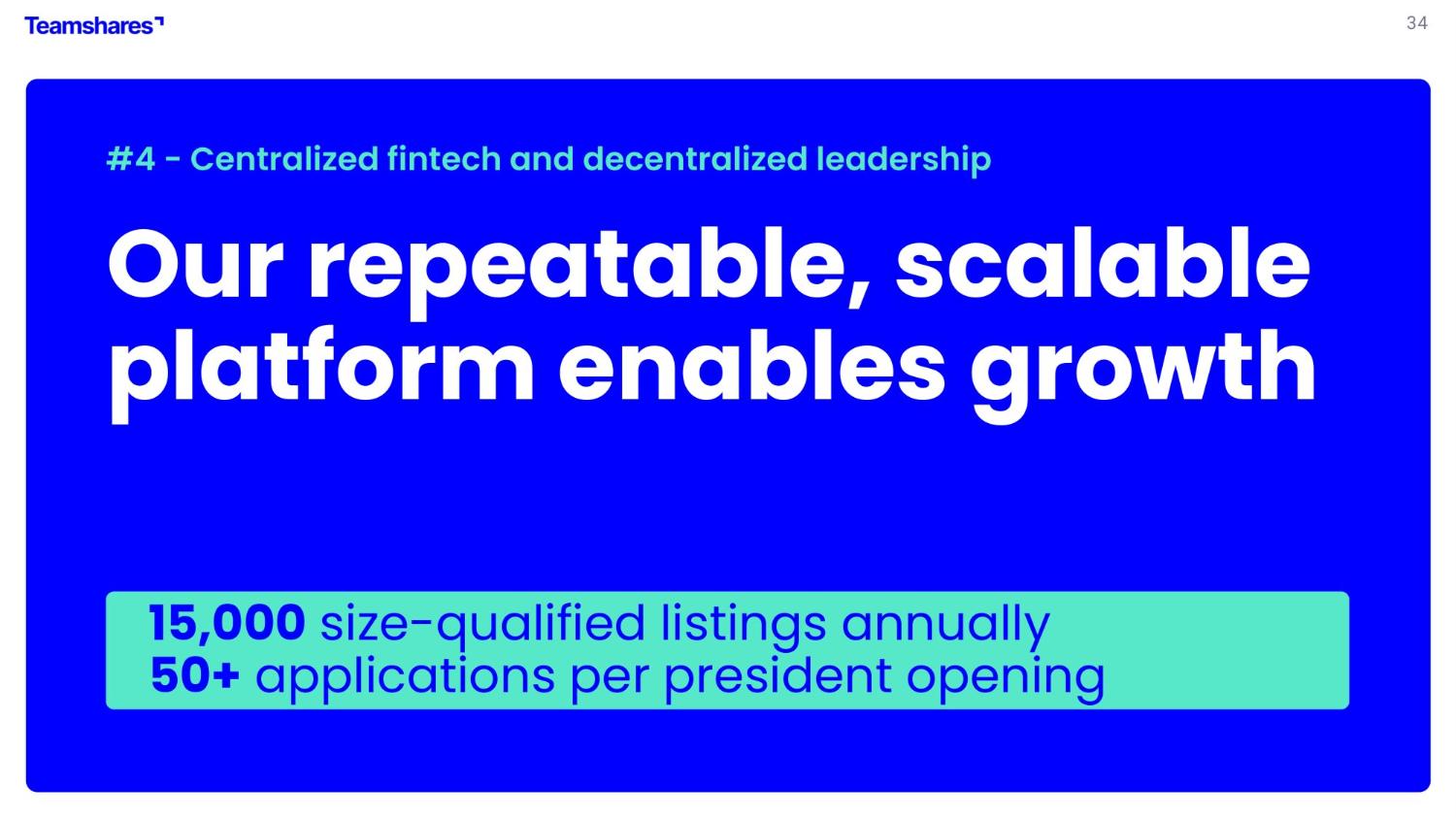 34 Our repeatable, scalable platform enables growth #4 - Centralized fintech and decentralized leadership 15,000 size - qualified listings annually 50+ applications per president opening