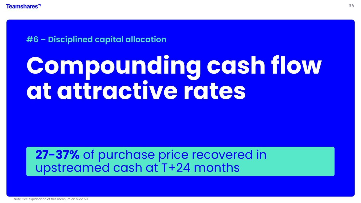 36 Compounding cash flow at attractive rates #6 – Disciplined capital allocation 27 - 37% of purchase price recovered in upstreamed cash at T+24 months Note: See explanation of this measure on Slide 50.
