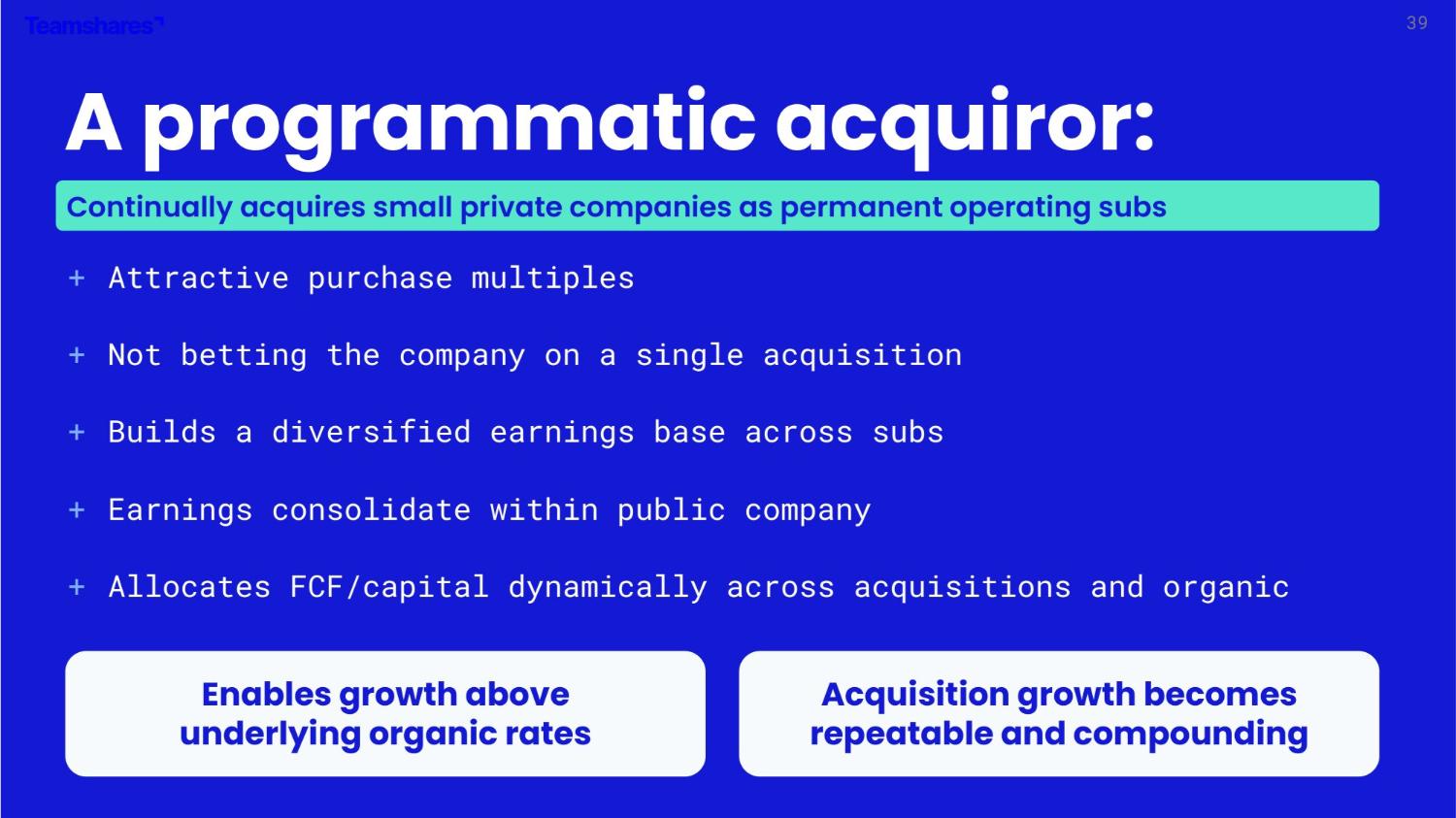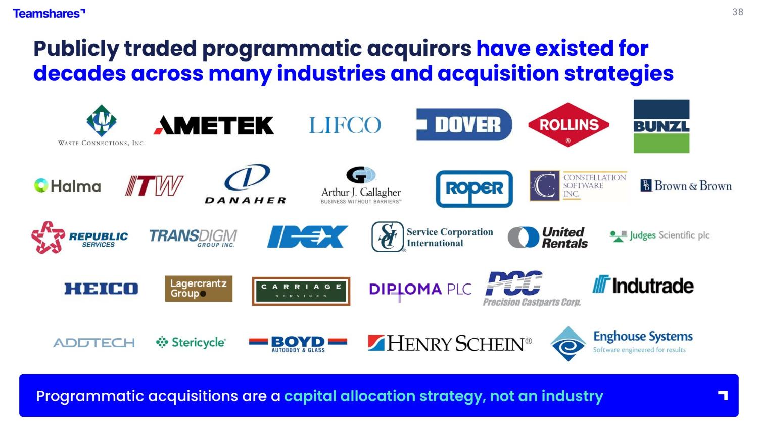 38 Programmatic acquisitions are a capital allocation strategy, not an industry Publicly traded programmatic acquirors have existed for decades across many industries and acquisition strategies