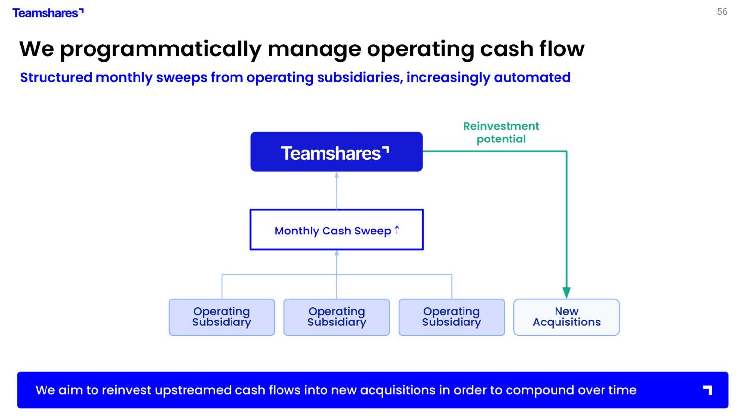 56 Operating Subsidiary Operating Subsidiary Operating Subsidiary Monthly Cash Sweep ⇡ Reinvestment potential We programmatically manage operating cash flow We aim to reinvest upstreamed cash flows into new acquisitions in order to compound over time Structured monthly sweeps from operating subsidiaries, increasingly automated New Acquisitions