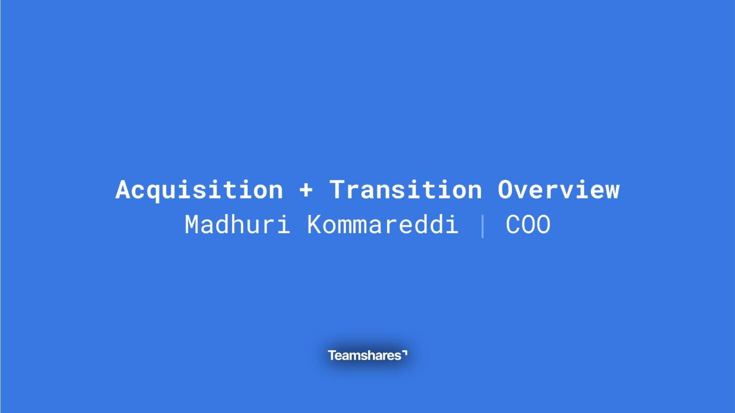 Acquisition + Transition Overview Madhuri Kommareddi | COO
