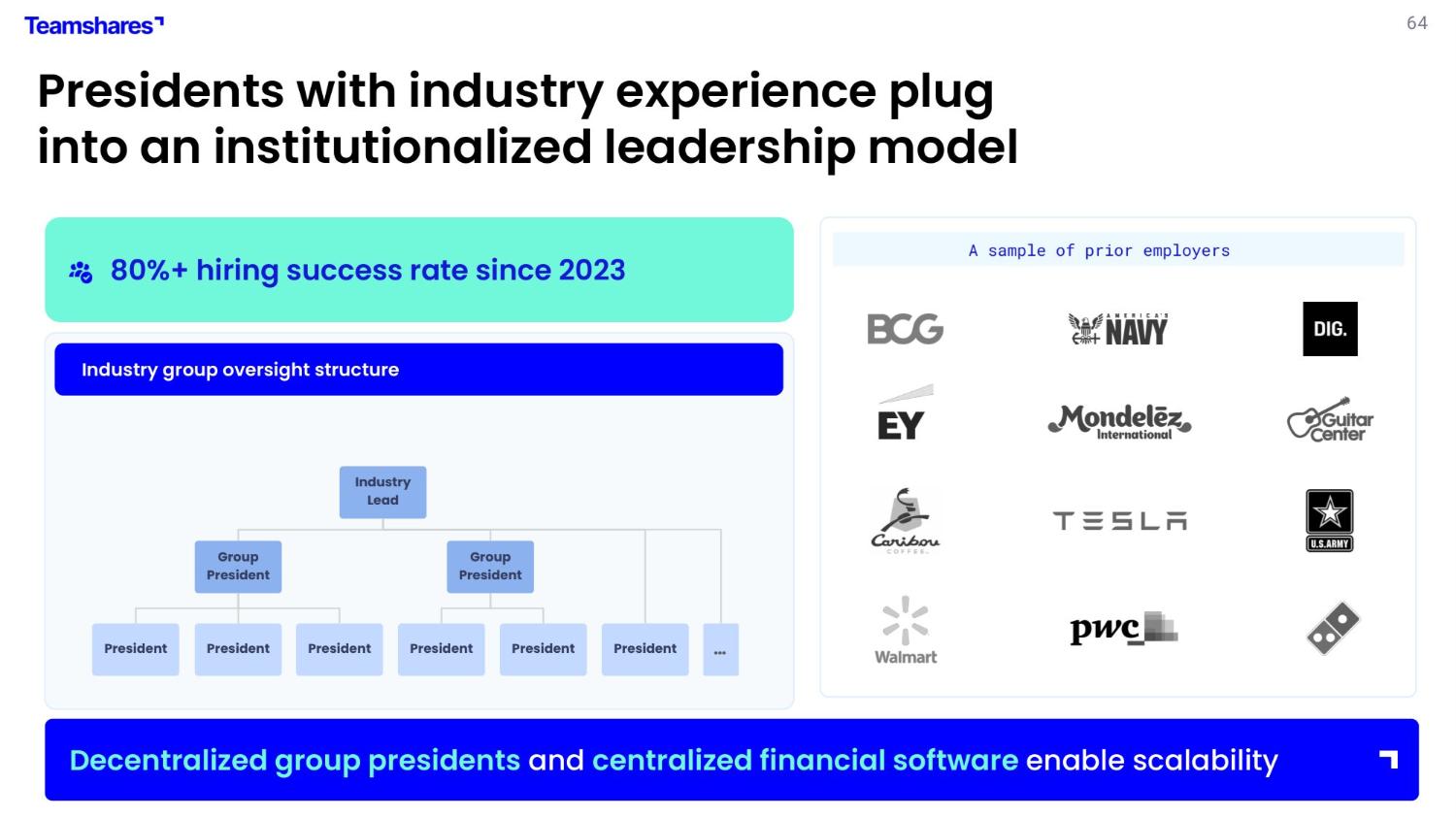 64 President President President President Group President President Industry Lead … President Group President 80%+ hiring success rate since 2023 Presidents with industry experience plug into an institutionalized leadership model A sample of prior employers Industry group oversight structure Decentralized group presidents and centralized financial software enable scalability
