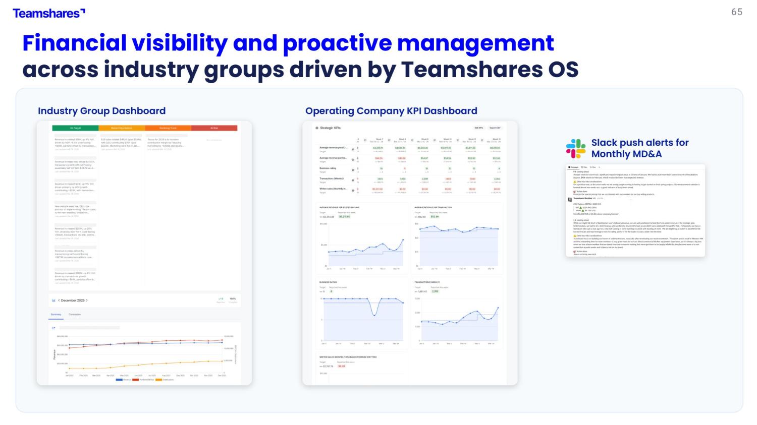 65 Financial visibility and proactive management across industry groups driven by Teamshares OS Slack push alerts for Monthly MD&A Operating Company KPI Dashboard Industry Group Dashboard