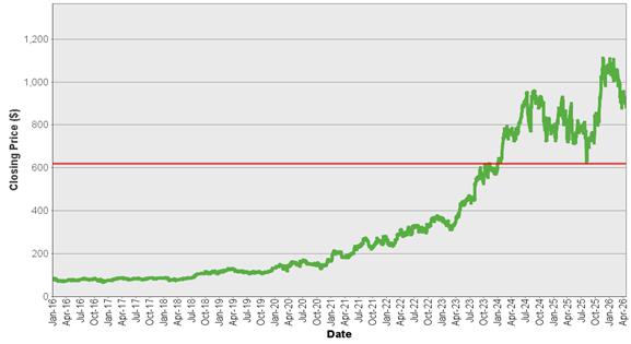 | Underlying Shares of Eli Lilly and Company – Historical Closing Prices* January 4, 2016 to April 24, 2026 |