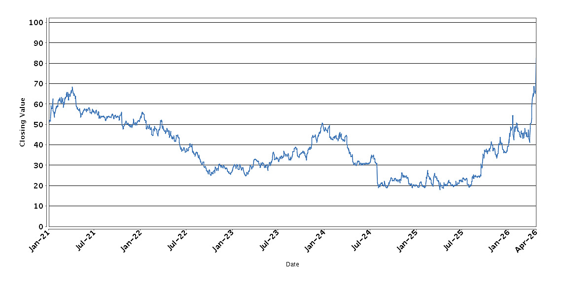 The graph below sets forth the historical performance of the Reference Asset based on the daily Closing Value from January 4, 2021 through April 24, 2026. We obtained the Closing Values shown in the graph below from Bloomberg. We have not independently verified the accuracy or completeness of the information obtained from Bloomberg. These historical closing values may have been adjusted to reflect certain corporate actions such as stock splits and reverse stock splits.