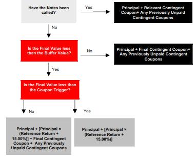 | Your payment on the Notes will depend on whether the Notes have been automatically called, whether the Official Closing Level of the Reference Asset on an Observation Date is greater than or equal to the Coupon Trigger, and whether the Final Value of the Reference Asset is greater than or equal to the Buffer Value. If your Notes are not called, you will lose some or all of your Principal Amount at maturity if the Final Value of the Reference Asset is less than the Buffer Value. In addition, if the Final Value is less than the Coupon Trigger, you will not receive the final Contingent Coupon. Even with any Contingent Coupons you received prior to maturity, your return on the Notes may be negative. | ![]() |