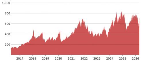 Hypothetical and historical levels of the MQVTUSLE should not be taken as an indication of its future performance. The hypothetical back-tested MQVTUSLE data only reflects the application of that methodology in hindsight, since the MQVTUSLE was not actually calculated and published prior to May 30, 2025 and the Sub-Index was not actually calculated and published prior to October 3, 2024. The hypothetical back-tested MQVTUSLE data cannot completely account for the impact of financial risk in actual trading. There are numerous factors related to the equities markets in general that cannot be, and have not been, accounted for in the hypothetical back-tested MQVTUSLE data, all of which can affect actual performance. Consequently, you should not rely on that data as a reflection of what the actual MQVTUSLE performance would have been had the Index been in existence or in forecasting future MQVTUSLE performance. In addition, the hypothetical back-tested data was produced by applying the MQVTUSLE’s methodology to historical levels of the 3-month U.S. dollar LIBOR rate, which differs significantly from, and is not calculated in the same manner as, the Effective Federal Funds Rate. See “Risk Factors – The MQVTUSLE and the Sub-Index were recently launched and have limited history.” The graph above shows the hypothetical back-tested MQVTUSTE data from April 24, 2016 up to May 29, 2025. The graph above also reflects the actual MQVTUSLE performance from May 30, 2025 through April 24, 2026 based on information that we obtained from Bloomberg L.P. Any hypothetical or actual historical upward or downward trend in the level of the MQVTUSLE during any period shown is not an indication that the level of the MQVTUSLE is more or less likely to increase or decrease at any time during the term of the Notes.