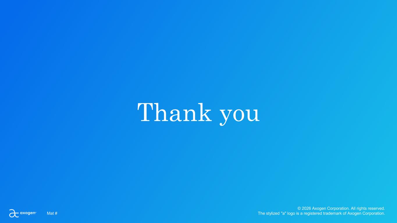 Thank you © 2026 Axogen Corporation. All rights reserved. The stylized "a" logo is a registered trademark of Axogen Corporation.Mat #
